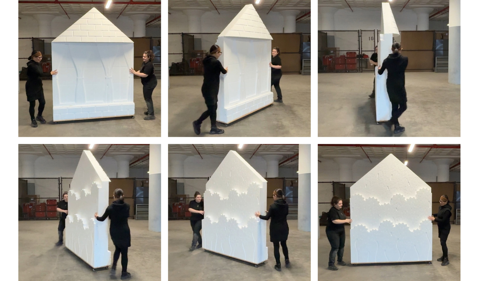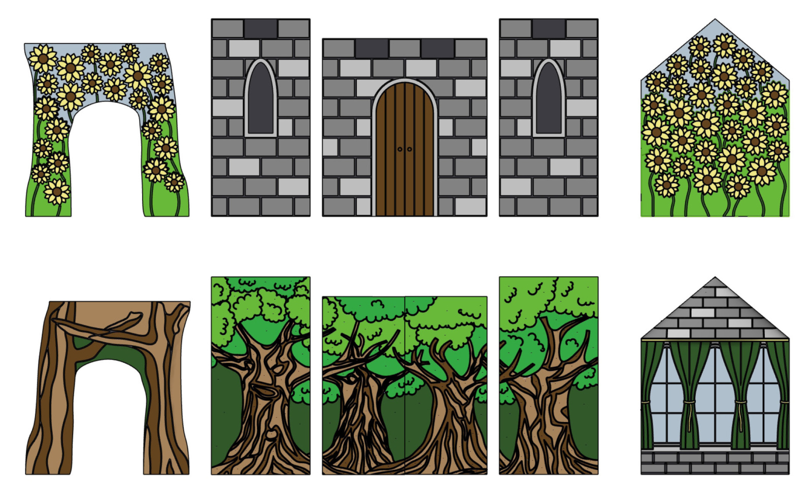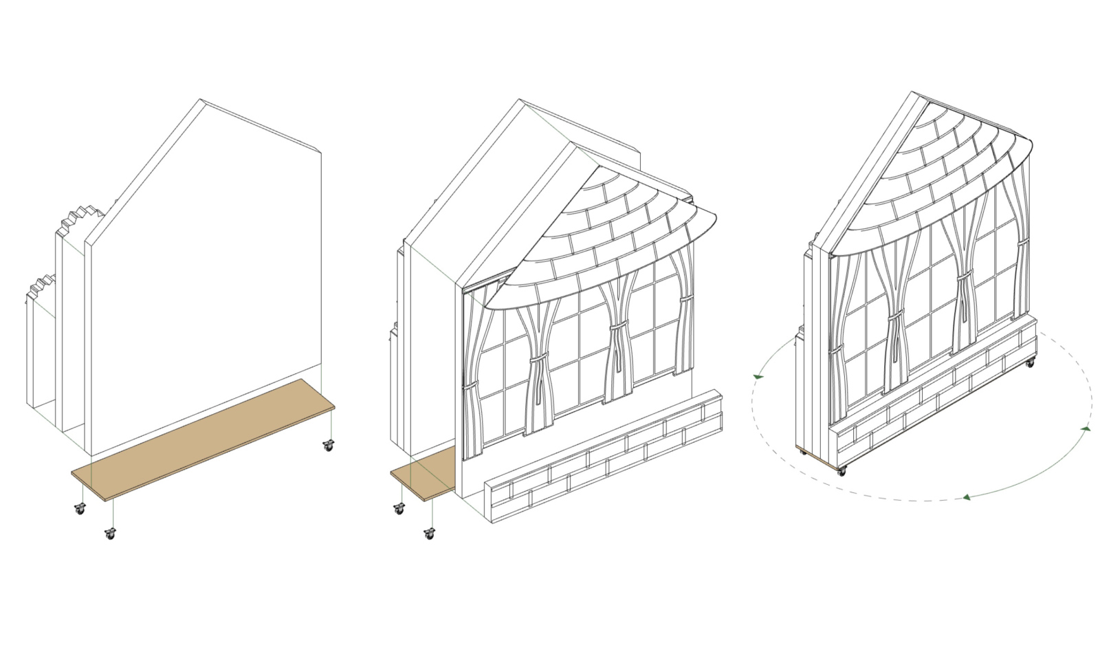 Similar to past sets PAYETTE has designed, we were asked to consider the maneuverability of the design since the children performing would be the ones switching the scenes throughout the play. We decided the scenes would be made of multiple layers of lightweight 3” thick polystyrene foam and put on casters so the students can move them around with ease. The panels are also double sided, so they can quickly be flipped around for the next scene.
