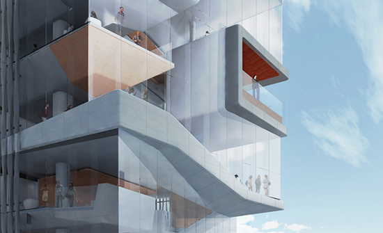 Left: Columbia University Medical Center (CUMC), Diller Scofidio + Renfro Rendering of Elevated Cafe