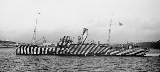 Dazzle camouflage photographs are in the public domain, provided via Wikipedia Commons.