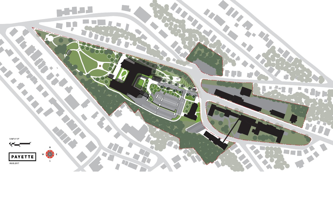 The new Chelsea Soldiers’ Home Community Living Center will provide a long-term care facility for the Commonwealth’s veterans atop Powder Horn Hill in Chelsea Massachusetts. Designed to harness panoramic views of downtown Boston and the harbor, the transformative new facility will have 154 private rooms organized around shared community spaces and surrounded by generous courtyards.