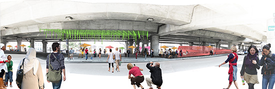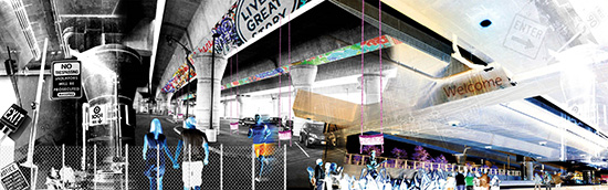 Living symbiotically with infrastructure proves to be an increasingly important priority when considering the urban fabric of the future. These infrastructures are under-utilized and quite singular. Currently, these border-like conditions yield illicit activity while evoking feelings of fear and danger. We must shift this paradigm at the local, regional and national scale in order to achieve a more designed, socially inclusive city.