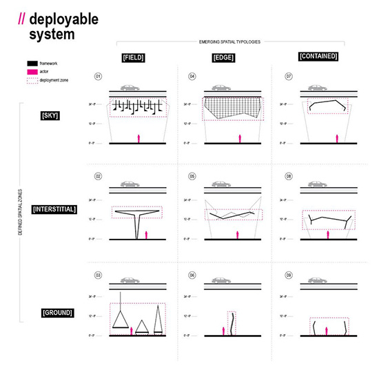 Diagram of the deployable system as it relates to the spatial conditions found surrounding highway infrastructures