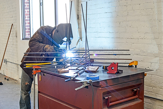 PAYETTE’s Parke MacDowell welding rotating rebar frames on the helical core
