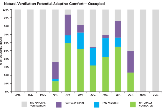 Naturally ventilated buildings can achieve higher occupant productivity, improved indoor air quality and significant energy savings. Designing for natural ventilation, however, can be a challenge: how much air flow can be achieved depends highly on the weather conditions, as well as on the building geometry, orientation, massing and opening location, and in order to maximize the potential of natural ventilation’s benefits, it is critical to select a ventilation strategy early in the design.
