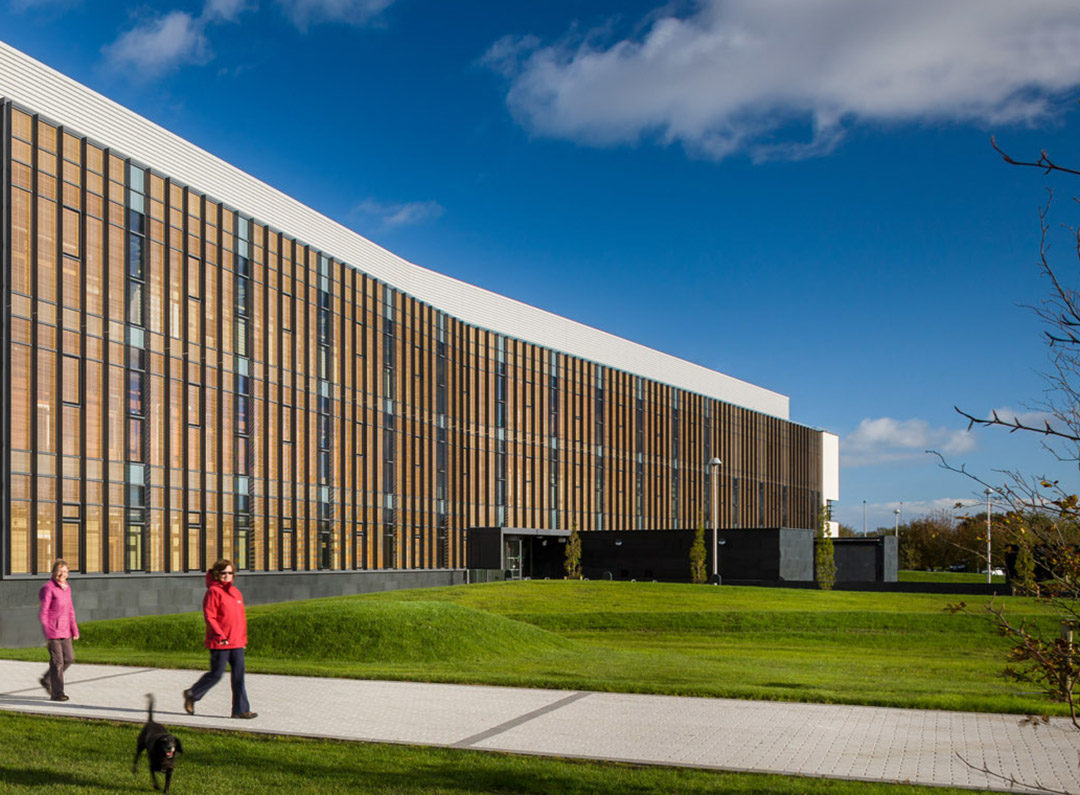 Sited in a rolling meadow near the River Corrib in Galway, Ireland, the Biosciences Research Building (BRB) is the first phase of the new North Campus Science Precinct at the National University of Ireland, Galway (NUIG). Housing high tech science laboratories dedicated to cancer research, regenerative medicine, chemical biology and BSL-3 animal research, the BRB offers a transparent and collaborative lab environment that connects the new science precinct with the university’s historic campus. Among the world’s most energy-efficient buildings to support intense scientific research with a 125 KBTU/SF net pEUI, the BRB was constructed for a remarkably low cost per SF ($413) as compared to similar facilities, which typically cost $600-800 per SF.