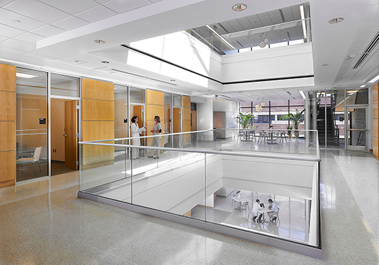Last Friday, August 23, the University of Alabama at Birmingham’s Wallace Tumor Institute celebrated the building’s re-opening after extensive renovations pushing the cancer program to an elite level. With over 400 people in attendance, George Marsh, the Principal-in-Charge of the project, reported the crowd to be “four-deep” on the balcony. In addition to remarks from Robert Bentley, Alabama’s governor and Dr. Edward Partridge, the cancer center’s director, Marsh spoke of the building’s deep and rich history, solid bones and the goals of the renovation of such a flexible building. The original building evolved through expansions, beginning in 1970 with architecture that was focused inward, as were many urban buildings of the era. The various expansions added depth and corridors, losing its original clarity and connectivity to the outside. One of Dr. Patridge’s primary goals for the renovation included creating a front door for the cancer center and to bring natural light into the building. This is exactly what the team sought to do, creating transparency throughout the building as well as clarifying circulation. Marsh spoke of revitalization and rejuvenation; from the corridors, to the main atrium, to the laboratory furniture; the building transformed. Marsh closed with a quote from a letter he received from Dr. Patridge three years ago, “WTI is going to be spectacular. Ugly duckling into a swan.”