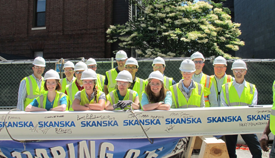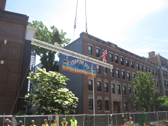 “The practice of “topping out” a new building can be traced to the ancient Scandinavian religious practice of placing a tree on the top of a new building to appease the tree-dwelling spirits of their ancestors that had been displaced. The practice migrated to England with Scandinavian invaders and took root there. Today, a non-religious but formal ceremony is often held to commemorate this milestone in the construction of a building. All tradesmen on the job usually join in the celebration as well as the supervisors, representatives of the architecture and engineering firms, the owner or representatives of the owning organization, donors, and any VIPs that are invited.”