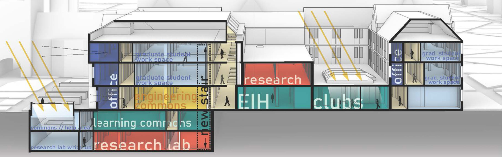 The result of this deep engagement with Notre Dame is a series of proposals that challenge limitations of legacy buildings to be more community oriented, suffused with daylight and views, and fundamentally useful as research and learning platforms. Phasing, swing space needs and a detailed analysis of building systems and infrastructure are necessary to test feasibility and establish project budgets.