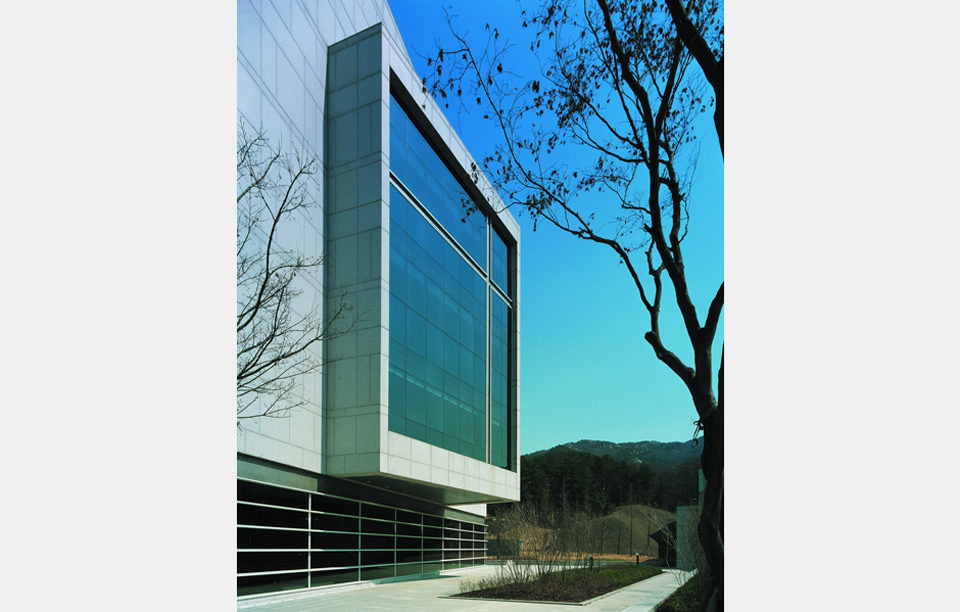 The Institute is carefully sited to create a strong formal relationship with its mountainous landscape, while reinforcing a site axis through to Kwanak Mountain behind it. The building’s form is fractured along an existing ancient footpath that extends through the site to a temple on top of the mountain, allowing hikers and pilgrims clear passage to the top. This fractured form expresses the clear functional divisions within the facility, separating administrative, research and production activities. Massing is articulated as three layers and volumes that can be read as one building or several. In the tradition of Korean landscape design, an intricate system of site walls, terraces and gardens link these forms, cradling the mountainous landscape and blurring the line between building and nature.