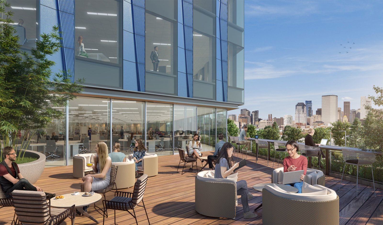 The biotechnology research and development real estate market has been robust and prolific for many years. While many buildings have lavish lobbies and loft-like flexible laboratory space, The 105 by Breakthrough seeks to bring a new approach to this market. This building is conceived as Class A rental space concentrating on amenities, views and in order to create a facility that encourages you to linger. Complementing the robust, state-of-the-art laboratory space on the upper floors, the first two floors are designed to build a research community that reaches beyond the tenants and even welcomes the neighborhood in.