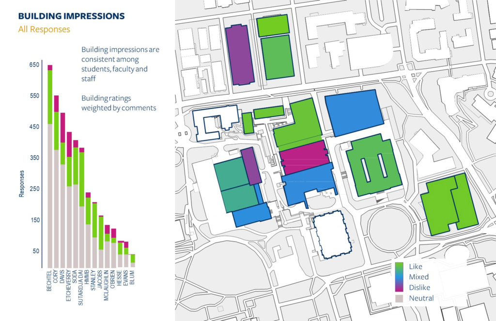 The College of Engineering Master Plan Update was developed to build on the 2002 College of Engineering Facilities Master Plan and support the College’s 10-15 year strategic goals. These goals included growing the College’s research portfolio, fostering community and multidisciplinary collaboration, improving indoor and outdoor spaces within the precinct and enhancing student experience. Ultimately, the plan provided recommendations for new construction and renovations consistent with these goals, as well as phasing scenarios designed to enable the recommended projects. Recommendations were informed by on-site stakeholder workshops, weekly teleconferences, campus planning documents, and strategic analyses performed in tandem with the project’s consultant teams. These analyses included space utilization studies, site analyses, seismic assessments and assessments of existing infrastructure.