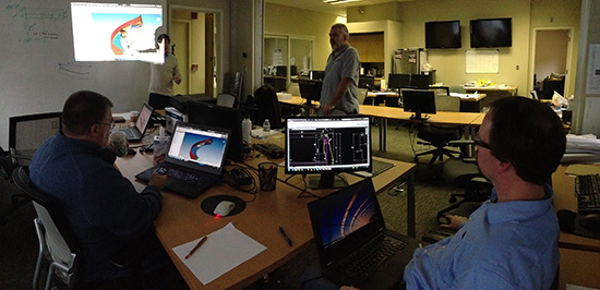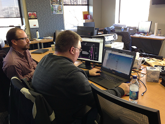 Neither the Krion nor the steel fabricators had heard of colocation before working with the Alexandria team. However, both remarked on how much they enjoyed the two week colocation experience and how the collaboration sped up the overall process. The Krion fabricator even commented on how elements of our design inspired ideas for future projects. All of us benefited from sharing our knowledge of different 3D programs and learned from each other while developing the spiral stair at colocation.