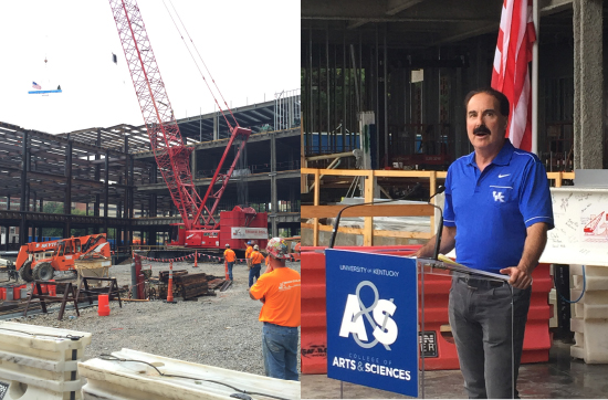 Earlier this month the University of Kentucky celebrated the steel topping off ceremony for the new $112M, Academic Science Building in Lexington, Kentucky. The ceremony was punctuated by several speakers from the university acknowledging the two year effort in the design and construction of what promises to be a new, cutting-edge teaching facility. Programming for the building includes Chemistry, Biology and Neuroscience as well as teaching labs, classrooms and extensive community spaces to support collaboration and new active learning and cutting-edge teaching environments. Dean Mark Kornbluh stressed the importance of this facility in supporting academic teaching alongside research and the new opportunities this building will afford the vast majority of the student population.