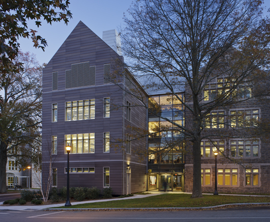 The original New London Hall was Connecticut College’s first campus building in 1914. The four-story Collegiate Gothic style building features a granite exterior quarried near the site. As the teaching labs and research labs fell into disrepair, the new addition and renovation to New London Hall provided an extraordinary opportunity to revitalize the historical features of the building.