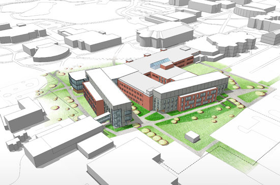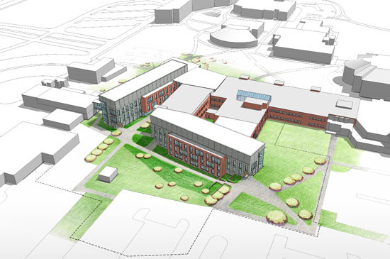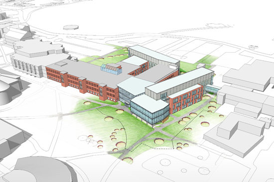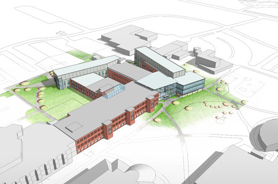 We are constantly developing graphic techniques that enhance the design process and enlighten our ideas. In the heart of Schematic Design, we were charged with the task of coming up with a user friendly way to represent the exterior concept. Using a technique I’ve picked up, we produced these multi-media 3D aerial views of the project. I helped integrate our hand-drawn landscape plan (drawn by Ramsey Bakhoum) into the computer generated 3D images. This multi-media technique helped communicate our ideas and soften the typically unforgiving sketch up views.