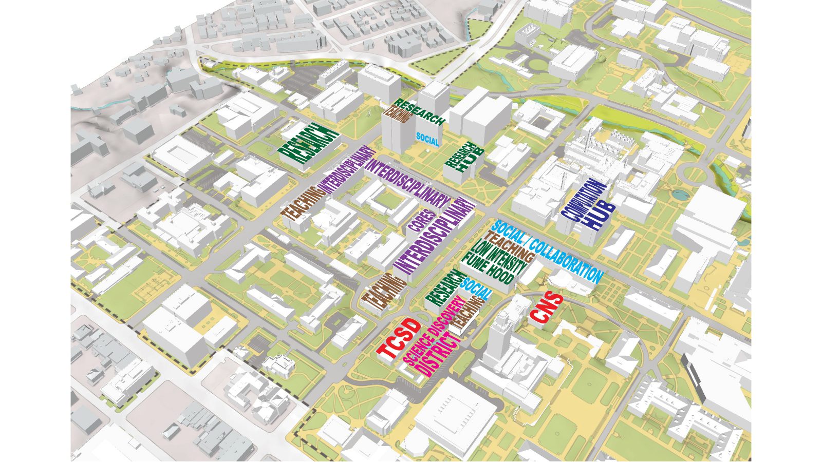 The study uncovered several key findings regarding space allocation and programs, through the analysis of the College’s existing facilities, classroom utilization and research collaborations and the benchmarking of space utilization against peer institutions. To foster interactions at the interface of traditional disciplines, the plan encourages multidisciplinary use of existing space, including the collocation of teaching space and research groups from multiple departments and programs. Leveraging the College’s existing assets, the plan regroups departments to create identifiable, energized hubs of social, teaching and research activity, to foster the pursuit of innovative research opportunities.
