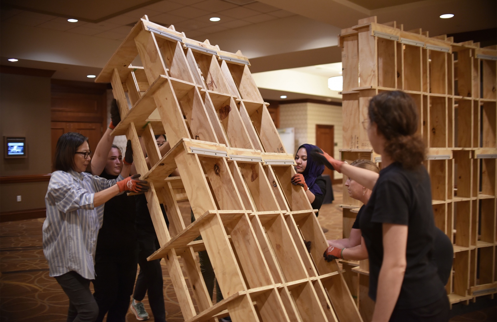 The structure and shell of the Sho-Ping Chin: Legacy of Leadership exhibition were designed, fabricated and assembled in-house at PAYETTE’s FabLab by an all-women team. Our firm’s WiD group, members of the fabrication team and people who collaborated with Sho-Ping were involved in the process.