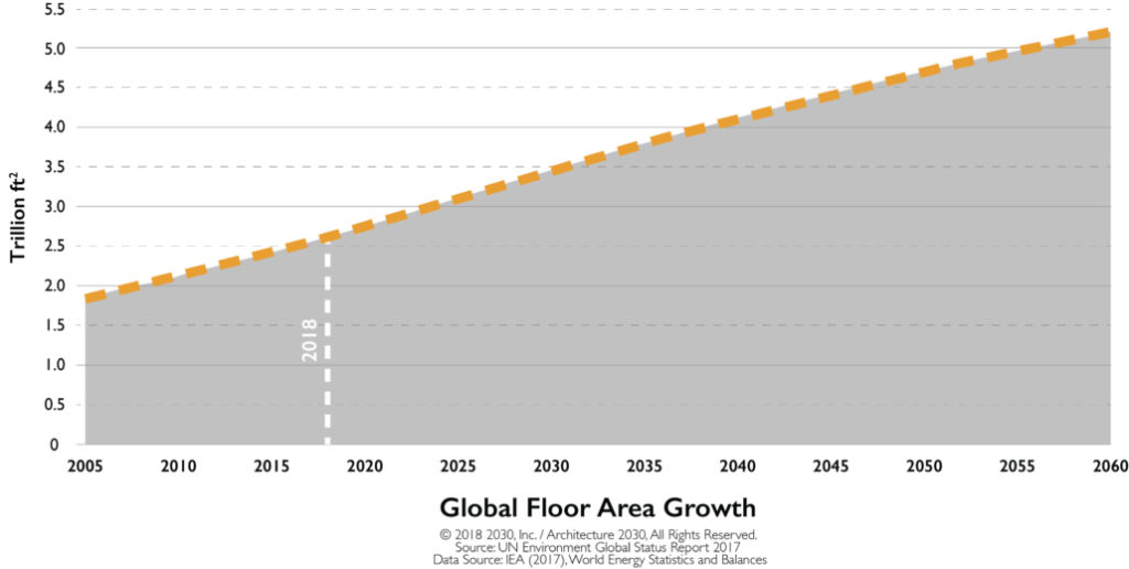 - The human population is expected to more than double and with it double the number of buildings by 2060, adding 2.48 trillion square feet (video), resulting in building a new New York City every month for the next 40 years. (Architecture 2030 Carbon Smart Palette)
