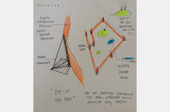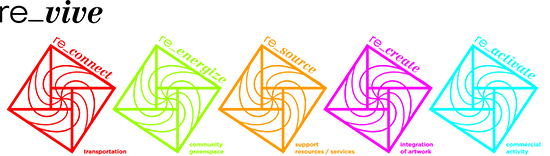 We propose re_vive: a system of nine different sculptural framework types designed and assembled to provide opportunity for and reinvigorate the space for each community. And though each group has different needs from the space, each element of the re_vive collection will allow those users to plug in to the infrastructure and take ownership of the space. By designing a language of sculptural forms, we’ve provided a system that can be deployed at different levels and phases. To illustrate our concept, we took the opportunity to build a half-scale prototype in our Fabrication Space. A couple members of our team split off and worked on production while the others remained on site to hone and pitch our idea while developing graphics and gathering community feedback.