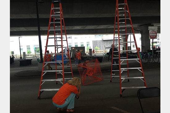 Our team of seven urban hackers tackled the design challenge set forth by Design Museum Boston’s Urban Innovation Festival from many angles. Over the course of three days the team iterated ideas to help activate the space under the I-93 overpass. One of the Museum’s goals was to showcase the design process by asking teams to share hourly updates of our work.