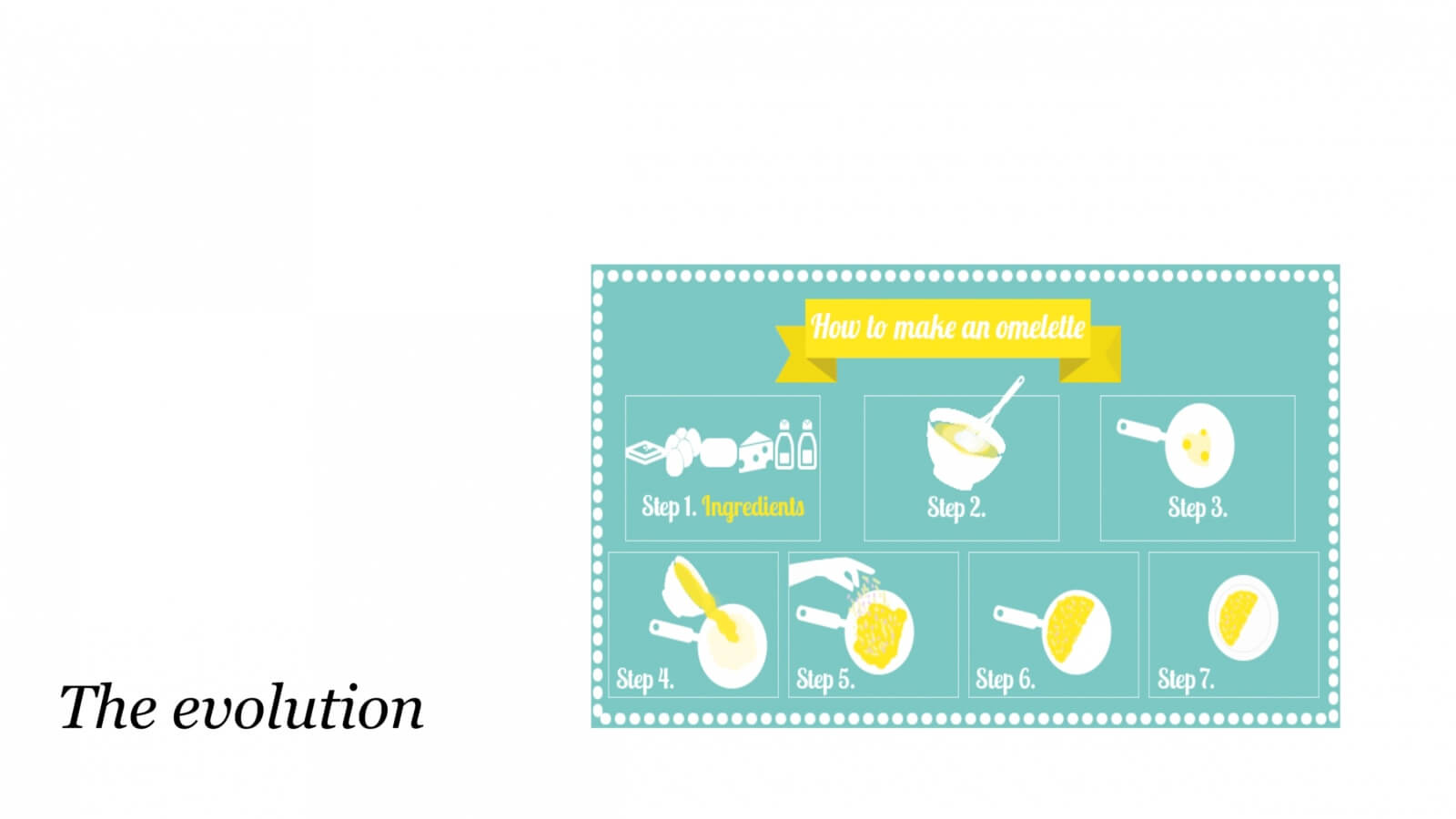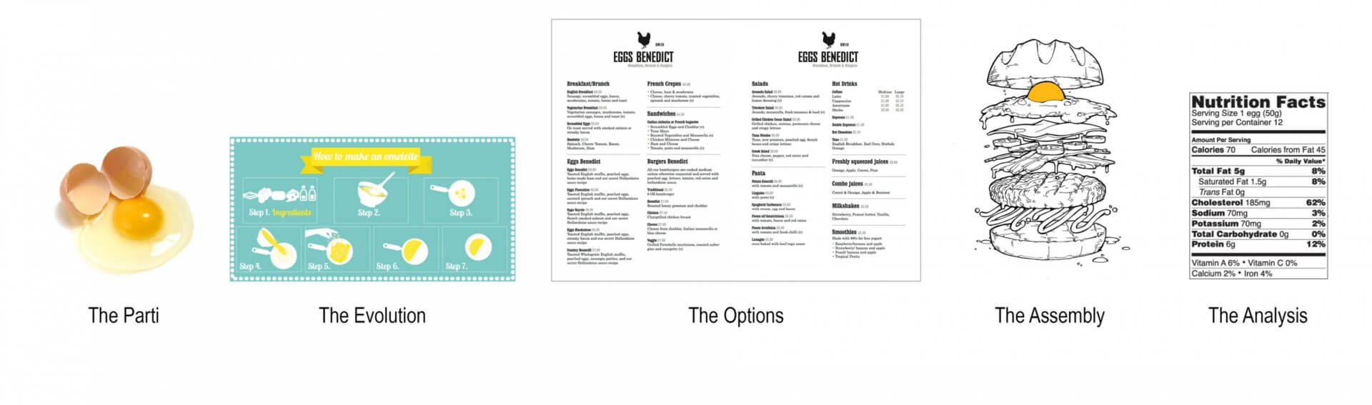 Much like the step-by-step instructions of a recipe, we use the diagram to further develop a concept, often as a progression of subtle or calculated changes.