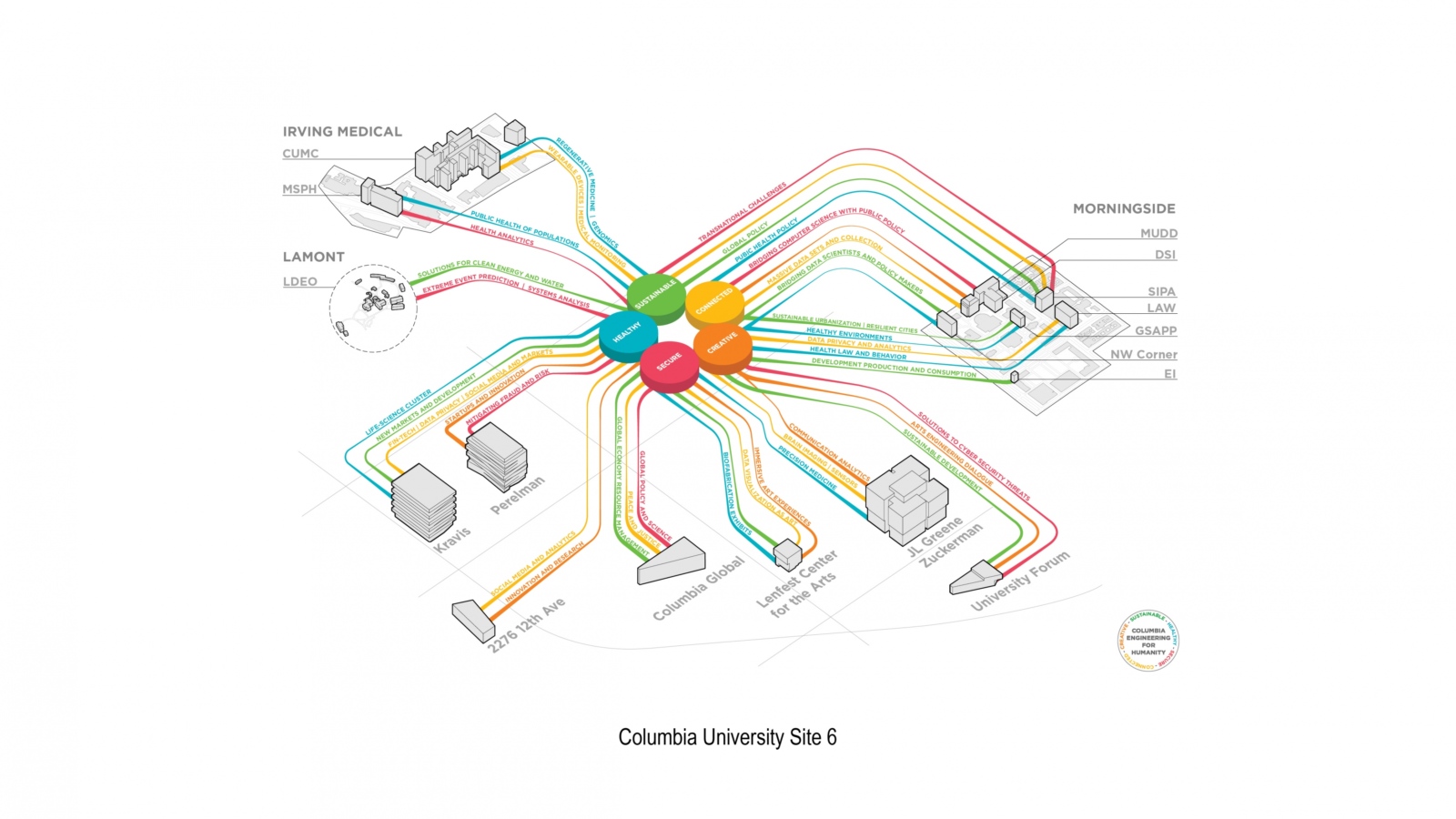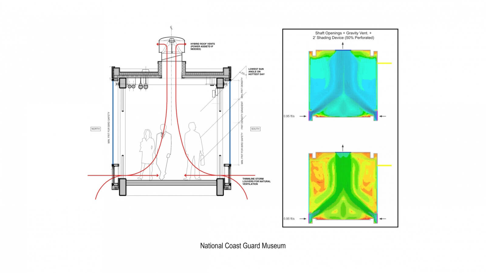 As a firm driven by the performance of our designs, we also use the diagram as a method of studying data to inform decisions. This can be at the level of the master plan, in the case of a project at Columbia University. And at a more focused level, through the critical lens of building science, as in the case of a diagram for the National Coast Guard Museum to evaluate performance and develop the design of an unconditioned but transiently occupied space to ensure user comfort.