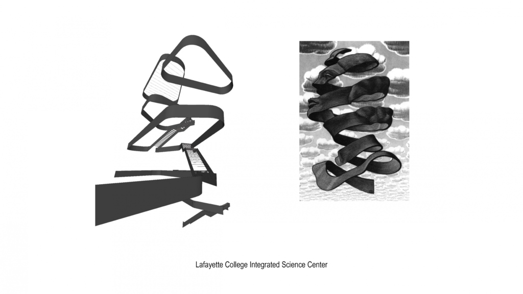We also use the diagram to describe a specific design element, such as the ribbon like behavior of the public stairs at the Rockwell Integrated Sciences Center at Lafayette College.