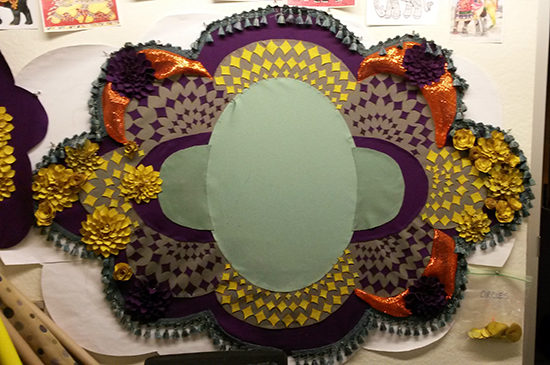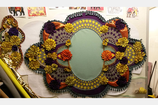 While the elephant was under construction in the shop, a team of busy fashionistas prepared intricate costuming for our wonderful models and the magnificent beast.