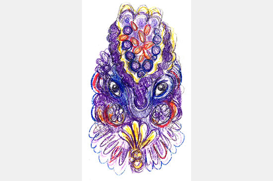 The accessories team followed an organic design process that enabled many hands and voices to experiment and contribute. The blanket shape, materials and framework for design were agreed upon, and then within that context individuals were able to spontaneously produce and create. The process was marked by bursts of creative energy. Patterns and objects were tested and added or subtracted as the design evolved in a poetic and conversational way.