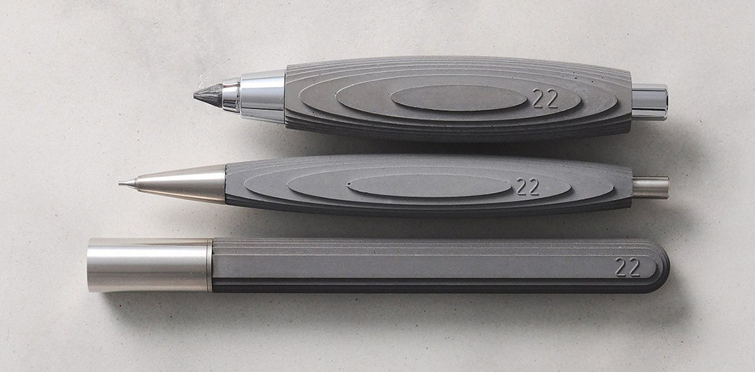 For the love of concrete! This set of concrete writing tools is one of a kind. Includes a rollerball pen, sketch pencil and mechanical pencil.