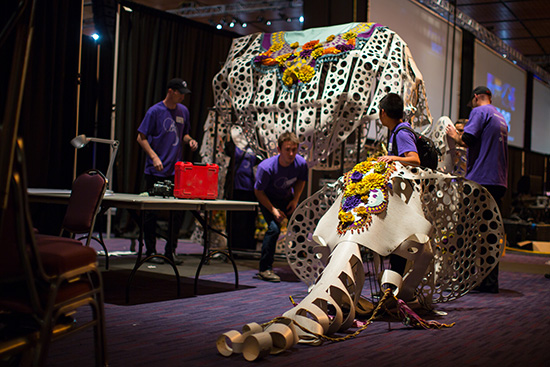 Transporting our elephant to the Convention Center required serious teamwork.