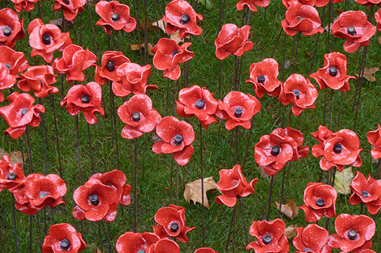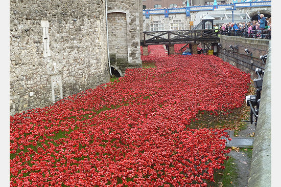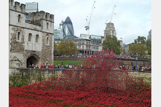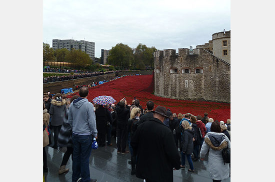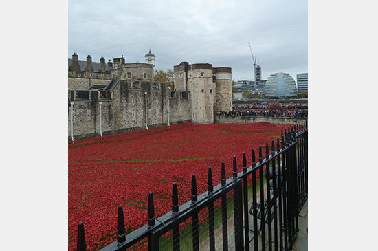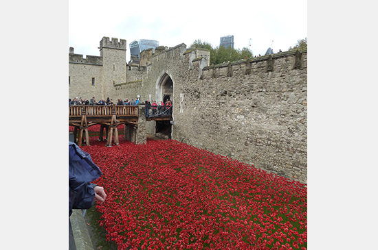 Working on an international project, such as the Skolkovo Institute of Science and Technology, we travel for various meetings with our client and with our consultants. During a recent visit to our engineer’s office in London for a series of coordination sessions we had an opportunity to do some exploring. We made our way to the Tower of London where we knew an installation titled Blood Swept Lands and Seas of Red was underway. The installation was comprised of ceramic poppies created by artist Paul Cummings and staged by designer Tom Piper. Symbols of remembrance that stem from the trench warfare in the poppy fields of Belgium during World War I, poppies have become an emblem of the fallen soldier. Marking the centenary of the First World War, the flowers flood the moat around the tower with red. They appear to pour from a window at the perimeter wall and flow around the structure like a river. Each of the 888,246 poppies represents a British fatality. A poetic reminder to our generation what devastating consequences war brings.