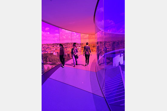 “Your rainbow panorama establishes a dialogue with the existing architecture and reinforces what was already there, that is to say the view across the city. I have created a space that can almost be said to erase the boundary between inside and outside – a place where you become a little uncertain as to whether you have stepped into a work of art or into part of the museum. This uncertainty is important to me, as it encourages people to think and sense beyond the limits within which they are accustomed to function.”