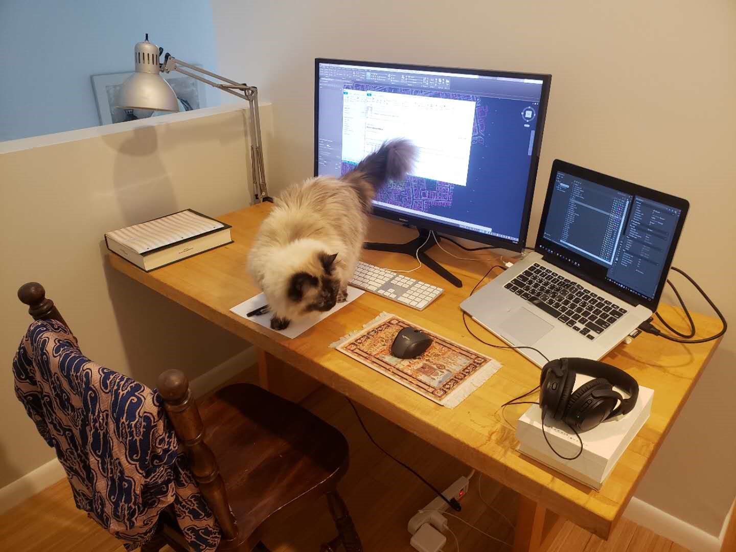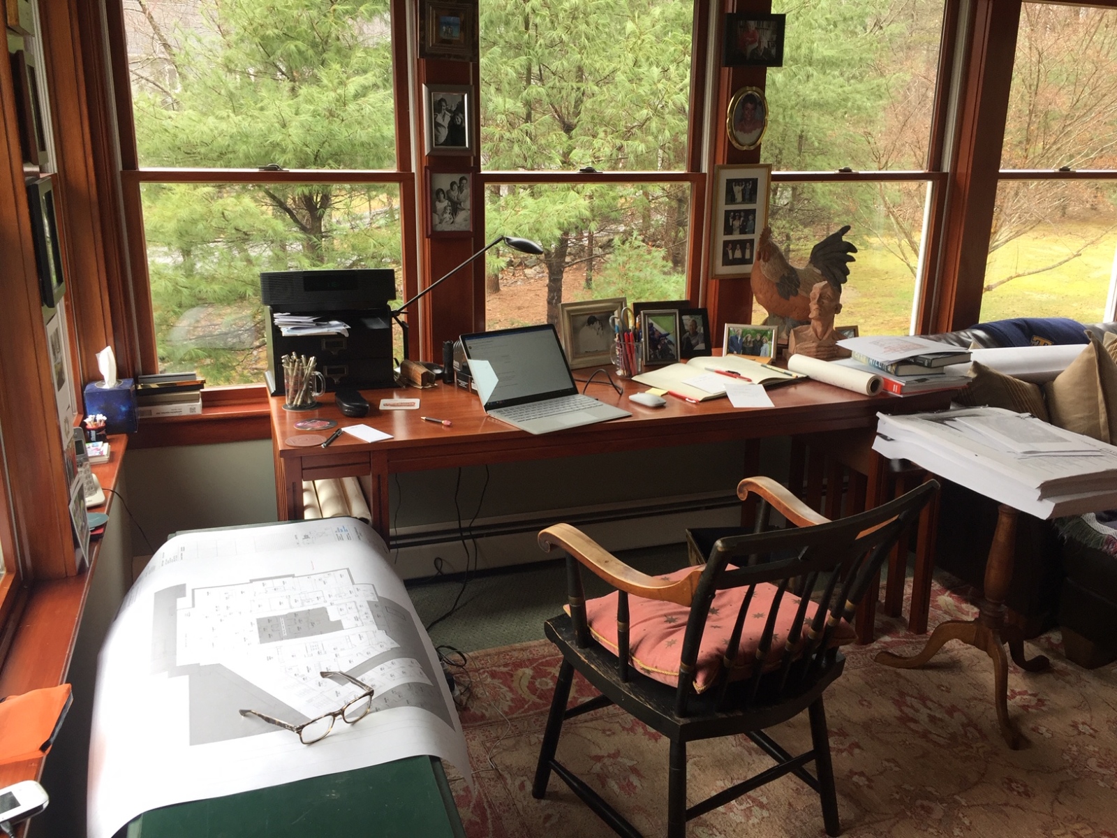 Over two weeks ago, concerns around Covid-19 prompted our in house Task Force and IT team to transition everyone in our office to remote work. In a matter of days, we were up and running with the same efficiency and support as when physically in the office. During our first virtual all staff meeting, we held a showcase of everyone’s remote workstations; a virtual version of the popular “What’s on Your Desk” blog feature. From a secluded workbench in the basement, allowing escape from interruption, to a home library with an amazing view, people across the Studio shared pictures of their home workstations. Most importantly, seeing everyone in our now vastly extended office provided much needed connection and lots of laughs during this time of geographic separation.