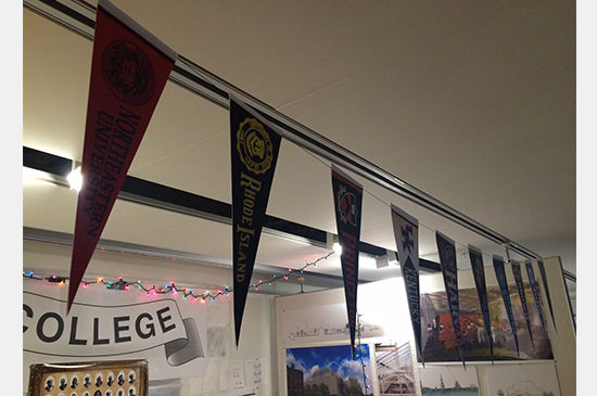 The College group sported togas throughout the night, to easily identify themselves. Their area was decorated with university banners, featuring the alma maters of the team members. They also designed a vintage-looking yearbook spread that served as the backdrop of their area.