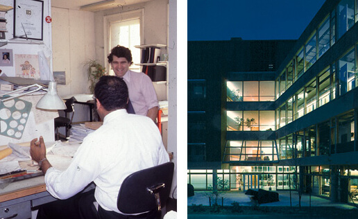 Very generous with responsibility given to young designers, he took great pride in their growth and success, as he did with his own family, making him an incredible mentor. His “troops” included many still at the firm – Jim Collins, Bob Schaeffner and George Marsh – who all worked on the third floor bay in the Isabella Street office, known for its energy and creative spirit, but not necessarily for its cleanliness. Jim, Bob and George all worked under Dave’s leadership on the MGH Wellman Research Building, completed in 1985.