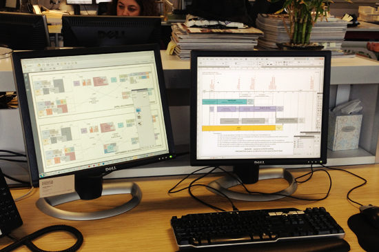With so many different creative minds under one roof, we all organize our work in a different way. I spoke with two members of our planning group about their work spaces. I learned a lot about how each has adapted their work space to best meet the needs of their jobs and individual work styles.
