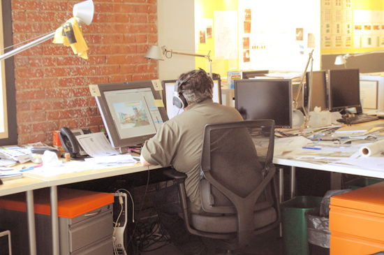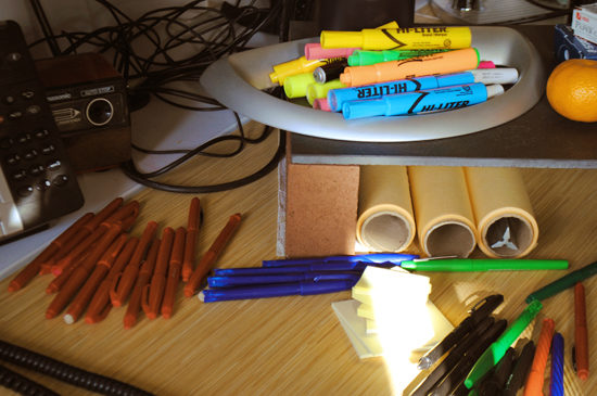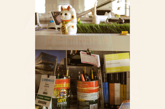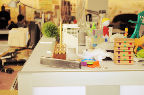 Inspiration comes from anywhere, everywhere. Sometimes flipping through an old Communication Arts sparks an idea or I’ll be be inspired while wandering around the studio to check out new mock-ups and design schemes. Sometimes a little clutter helps us think and really settle in to a project. In honor of the small chaos that orders our work, let’s take a look around at what’s on our desks. What’s on your desk? Where do you draw inspiration?
