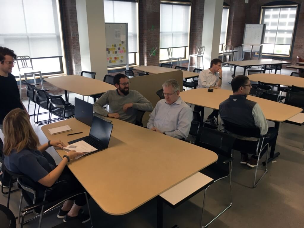 We knew that the dimensions and shape of the tables in the room would be a critical design element contributing to the success of the space, so we decided to mock up several table shapes at full scale for assessment.