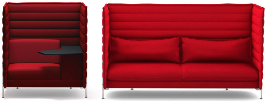 The Vitra Alcove series, designed by Ronan and Erwan Bouroullec, has been steadily popular since its debut. The sofa version was perhaps an instant classic, but I am partial to the single-seat piece with a tablet arm.