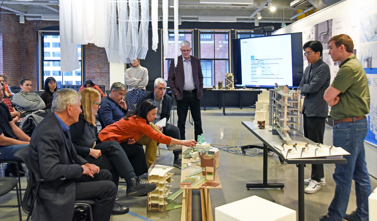 This outreach extends into collegiate architectural education through our partnership with the Virginia Tech. Every Fall, we host a full design studio in our office, where students work side-by-side with our designers and architects. The program positions a Comprehensive Studio, Digital Building Technologies course and Professional Practice seminar as a packaged learning opportunity with each class supporting and reinforcing a holistic curriculum. The fabrication group plays a key role in this exercise, as the academic studio is modeled after our design practice here at PAYETTE. Under the guidance of our team, students use models and mock-ups as both a vital component of the design process and a powerful way to convey intent.