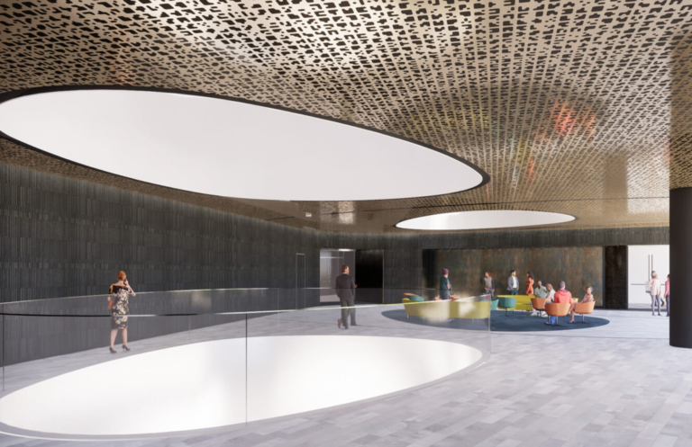 While minimalist in appearance, what is not as obvious in the final result is the extensive experimentation throughout the design process, including strategy over modeling methods, discussions on how to capture the design intent of the building, and many iterative attempts which informed entirely new material use and design considerations. Before any final physical making was undertaken, the project existed as a virtual Rhino model, which itself was distilled from Revit files provided by the project team and which were being actively used in the construction of the actual building.