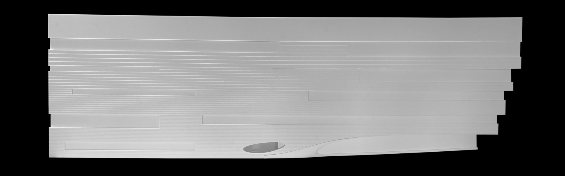 This array of strategies meant to give clarity to the design was primarily explored via 3D models and renderings. But after a few preferred options rose to the fore, the project team saw value in transitioning to physical modeling and even bumping up a scale (1/4”=1’-0”). And after a tremendous effort to relocate and properly accommodate PAYETTE’s CNC router to its new home in the Seaport, testing the building’s banded façade in foam seemed like an excellent chance to jump back into fabrication. o.