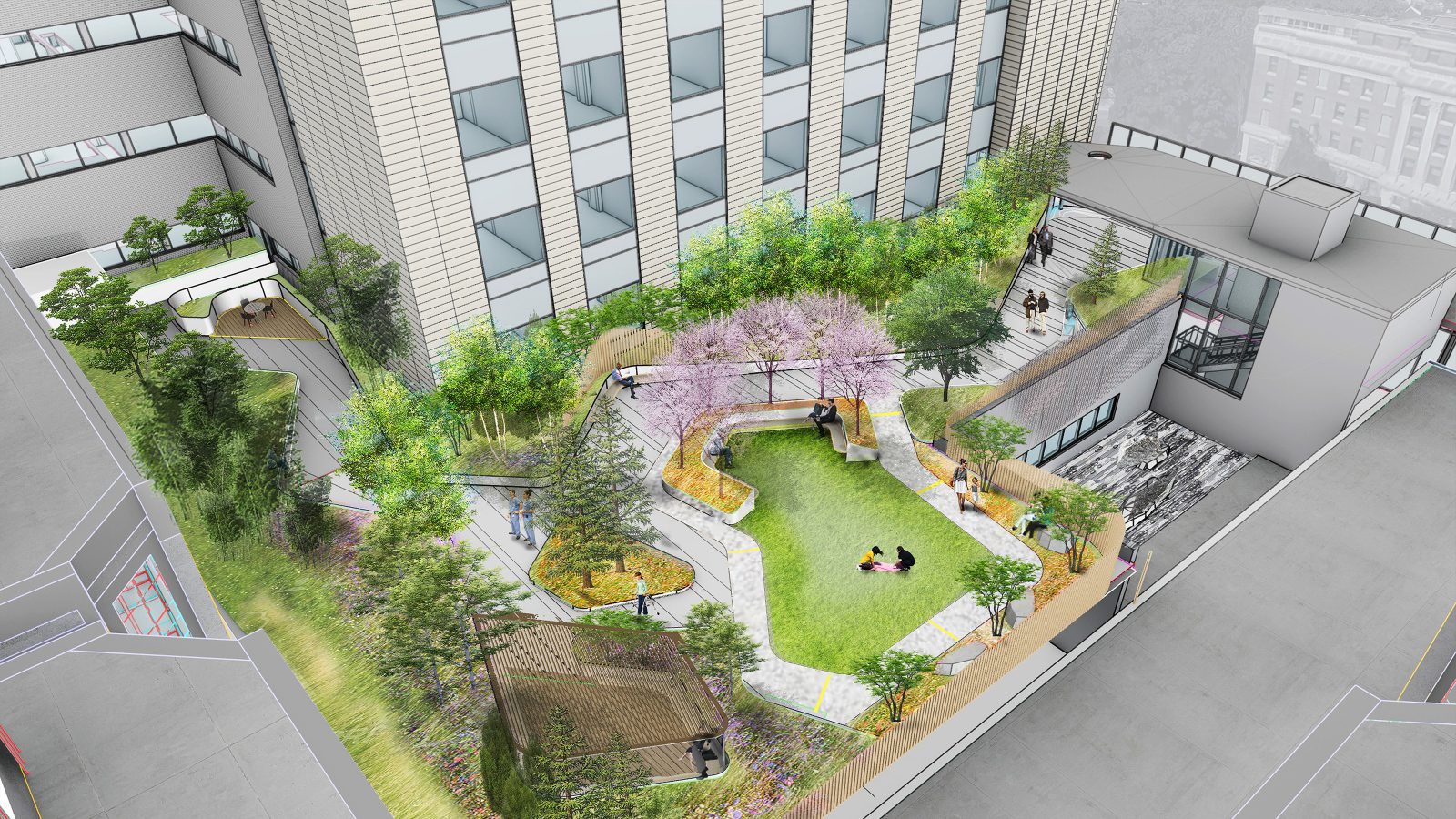 Enlarging its Center City Philadelphia campus, the plan creates a new heart for the healthcare campus, bringing clarity and definition to clinical processes and improving patient access. New buildings will complete the restorative infill of an entire city block and connect all modalities of patient care.