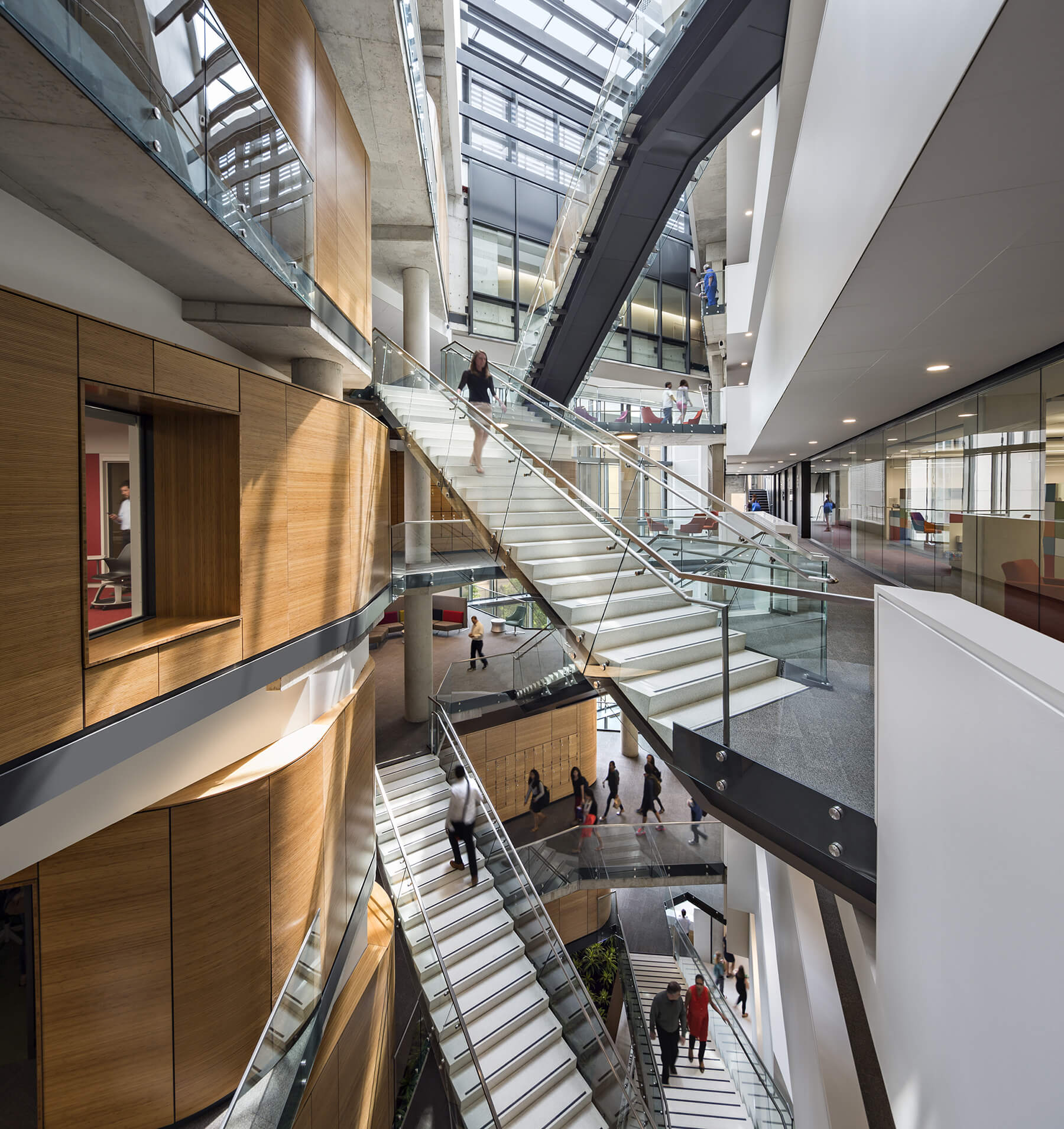 Occupant surveys revealed that 87 percent of respondents feel the building supports their health more than other campus buildings, citing stairs and natural light as the primary reasons.