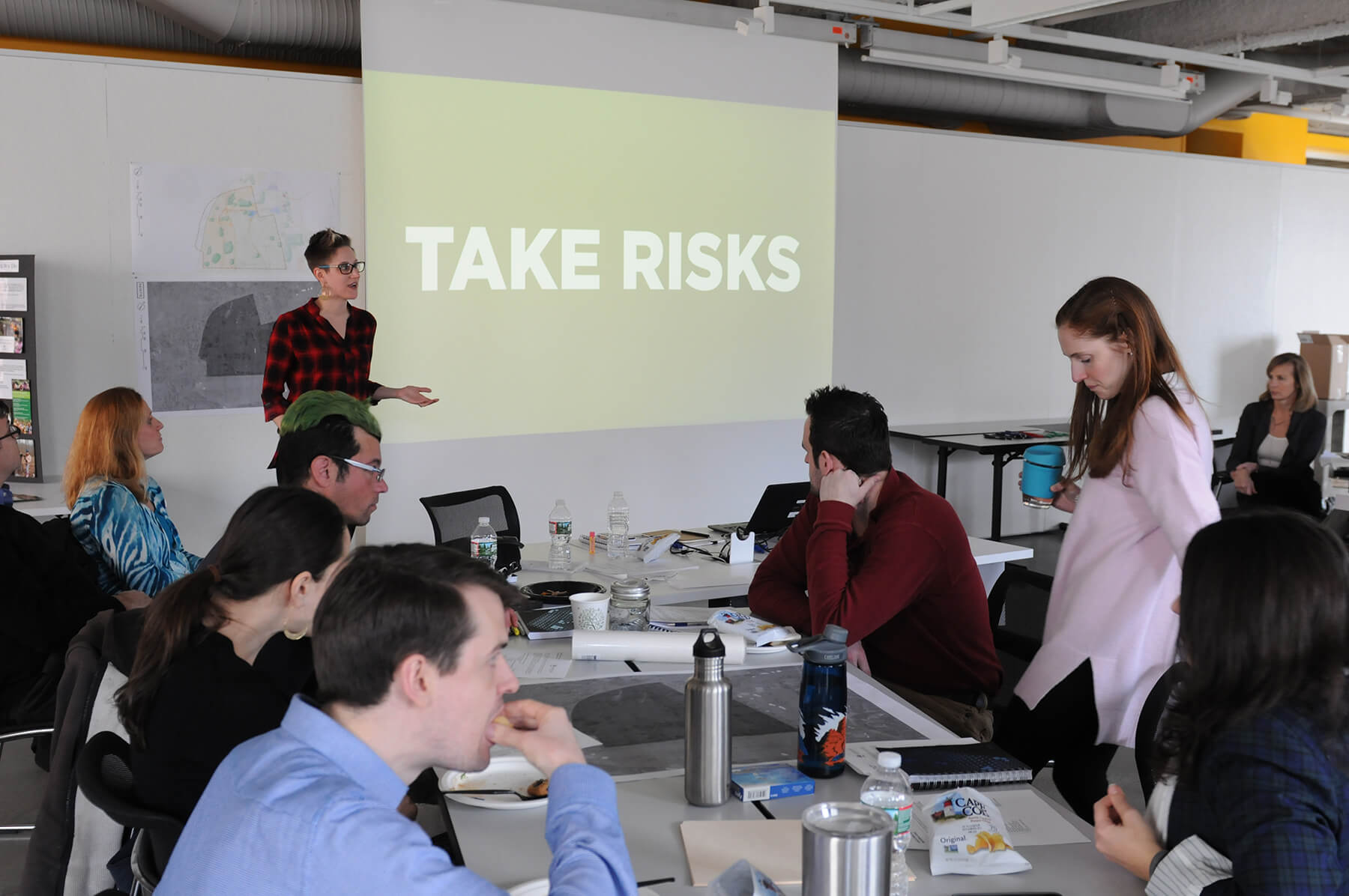 I work to engage the firm at many levels—internally and externally. I draw ideas out of people not used to articulating their expertise, while shaping strategy and working across teams and hierarchies to showcase our 150-person firm. I answer to the firm’s 10 principals as I craft strategy, special events, and exhibitions to showcase our work. I’ve also had the opportunity to help lead pro bono projects, working closely with clients to understand their needs and craft the story.