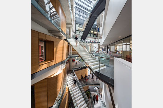 For this LEED Platinum-rated new school of public health, the design team successfully exploited numerous planning, organizational and technical execution strategies – from the very outset of design – to make this building a powerful vehicle for communicating sustainable design intent. As such, many of the building’s most sustainable solutions are so deliberately integrated and embedded as to be nearly indistinguishable from the its accommodation of programmatic requirements, manifestation of wellness and healthy living, and expression of institutional vision.