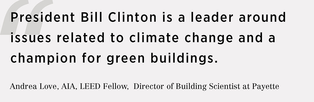 This year, President Bill Clinton will give the keynote address at the 2017 Greenbuild International Conference and Expo at 6 p.m. on Nov. 9 at the Boston Convention & Exhibition Center. PAYETTE Director of Building Science Andrea Love who is also Board Chair of the U.S. Green Building Council’s Massachusetts Chapter spoke with ENR Magazine about this exciting announcement.
