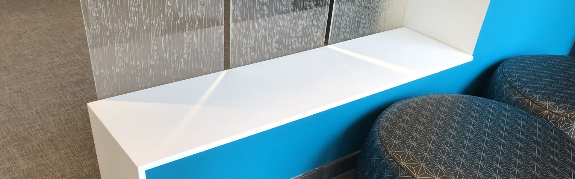 The interior concept for the South Building is three pronged: organization, function and student spaces. Separated into two distinct bars which are united by color, ceiling treatment and interior finishes, the building separates lab space from office and conference space, allowing for a clear distinction between the two. In both bars, function is paramount. This includes durable solid surface cubbies that house all of the student “stuff” outside of the labs to dedicated pin up spaces in the office area for important notices and informational material.