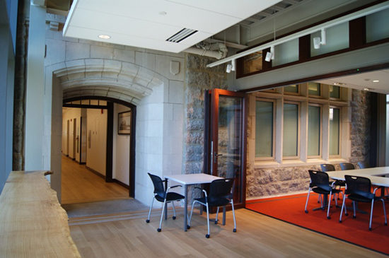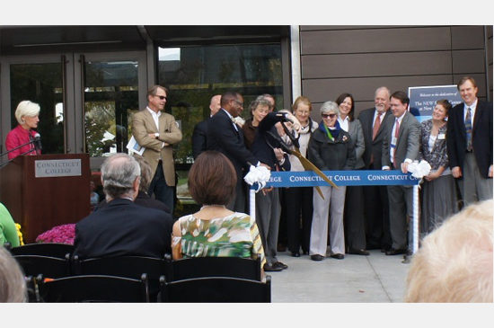 On Saturday, October 27, 2012 Connecticut College held the Dedication of the Science Center at New London Hall. The Science Center opened for the Fall 2012 semester in August. While the building was programmed for the Biology, Botany and Computer Science departments, 16 different departments are teaching classes in the building this semester! The social spaces in the ‘link’ connecting the existing building to the addition were instantly populated with students and faculty after the building opened.
